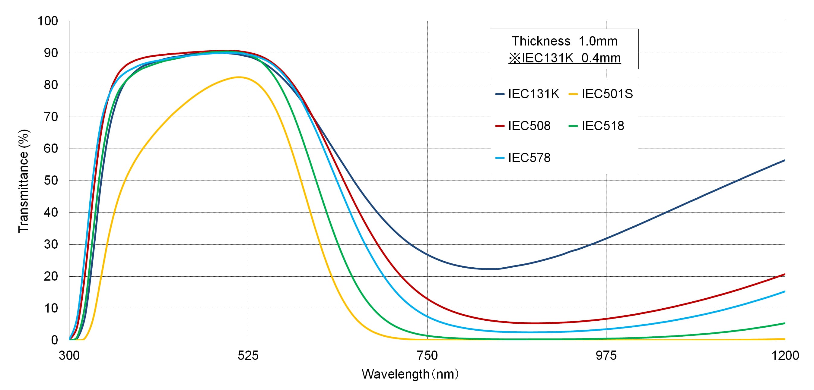Blue glass filters (IEC series) are characterized by high transmittance from blue to green, and absorption from near-infrared to infrared.